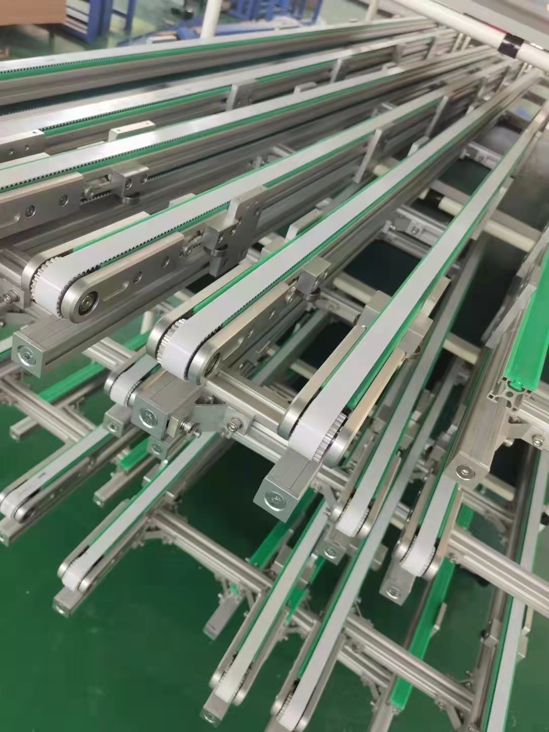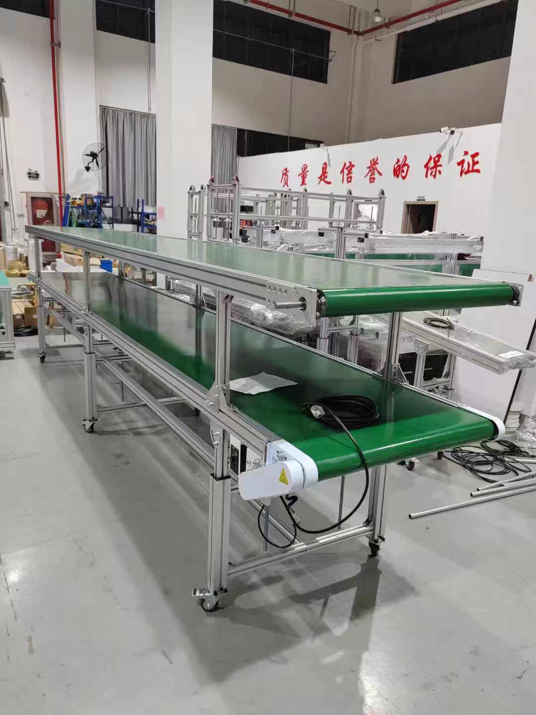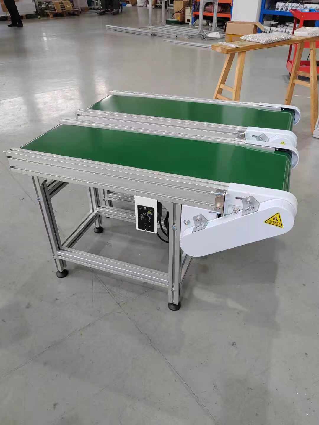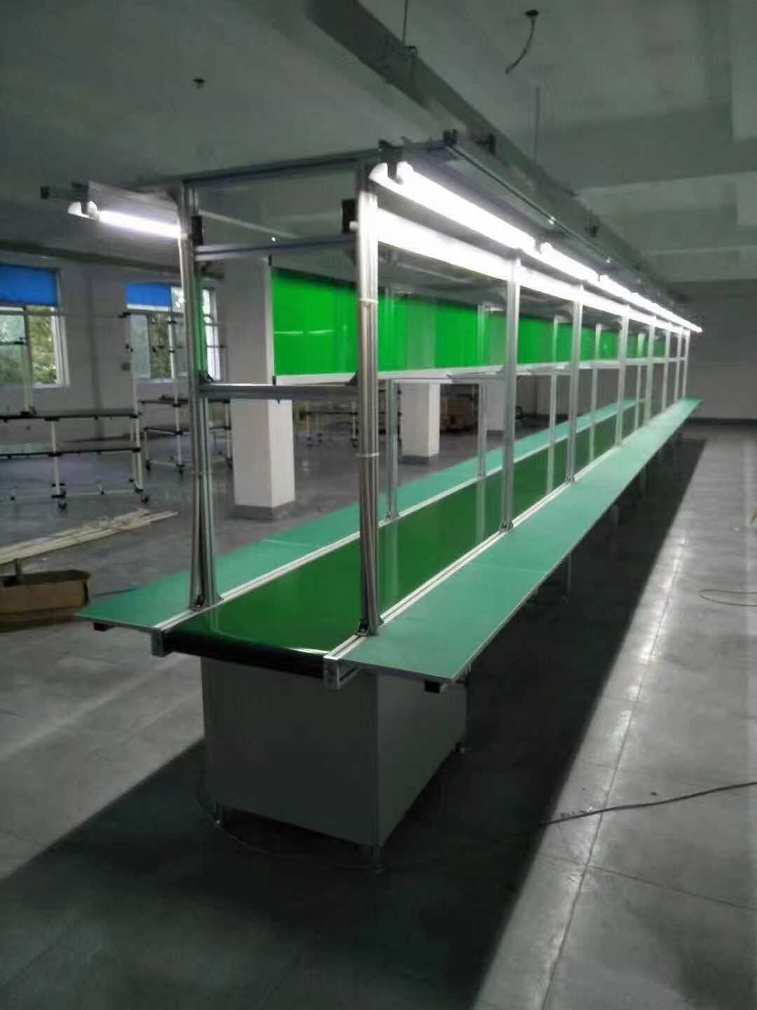 皮帶線廣泛應(yīng)用于家電、電子、電器、機(jī)械、煙草、注塑、郵電、印刷、食品等各行各業(yè),物件的組裝、檢測(cè)、調(diào)試、包裝及運(yùn)輸?shù)取>€體輸送可根據(jù)工藝要求選用:普通連續(xù)運(yùn)行、節(jié)拍運(yùn)行、變速運(yùn)行等多種控制方式;線體因地制宜選用:直線、彎道、斜坡等線體形式。