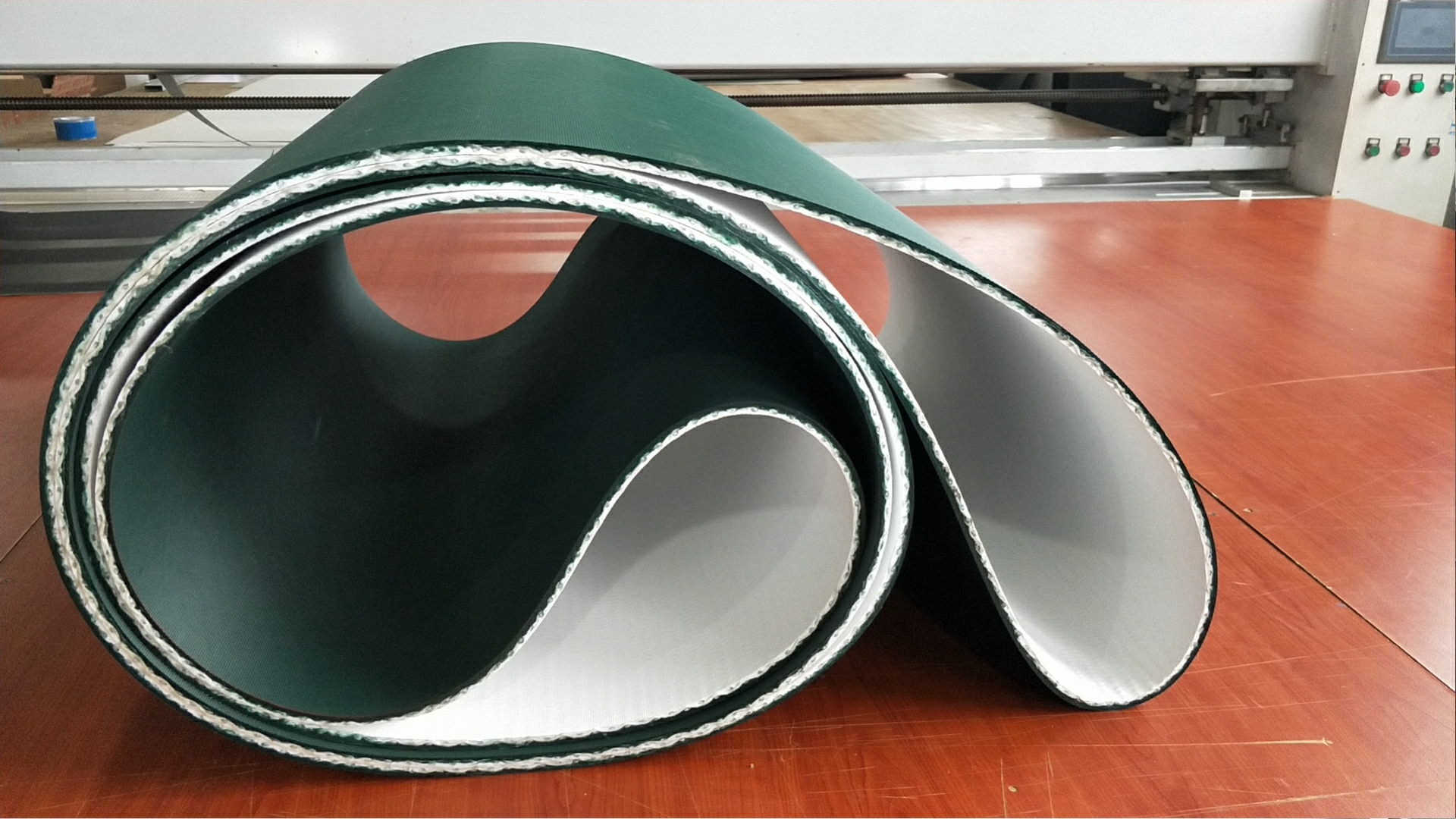 產(chǎn)品介紹: 產(chǎn)品制作: 將紗線整經(jīng)穿棕,編織成無縫環(huán)帶;所述的紗線為高強低伸滌綸紗、對位芳綸紗或玻璃纖維紗;(2)將含水質(zhì)量百分比低于0.1%熱塑性聚氨酯彈性體橡膠刮涂于所述的無縫環(huán)帶。助卷皮帶特性: 助卷機帶100%的聚酯織物層,使皮帶具有良好的抗壓力和拉張力,不會斷裂; 助卷機帶- 強力層為完全無縫編織,厚度均勻,柔順,尺寸精確; 助卷機帶- 具有良好的抗油性,可抗多