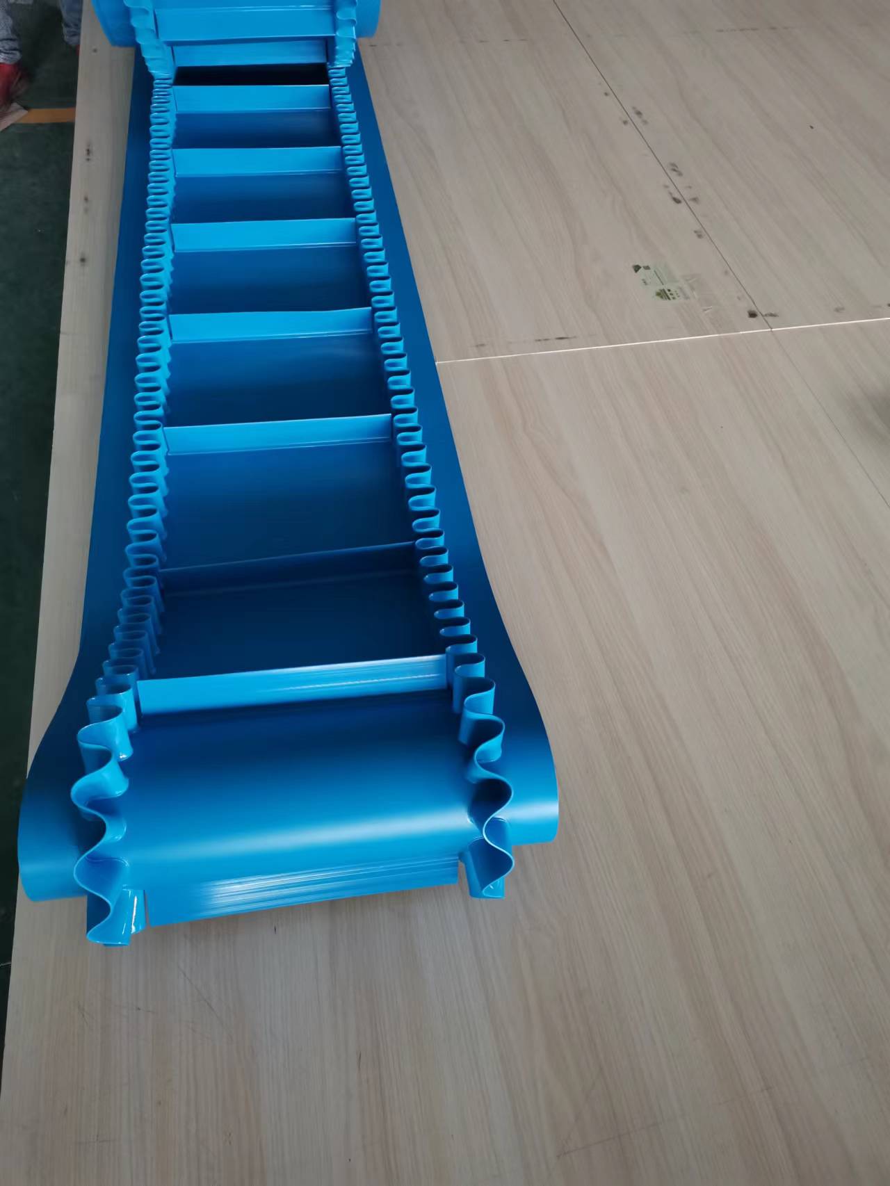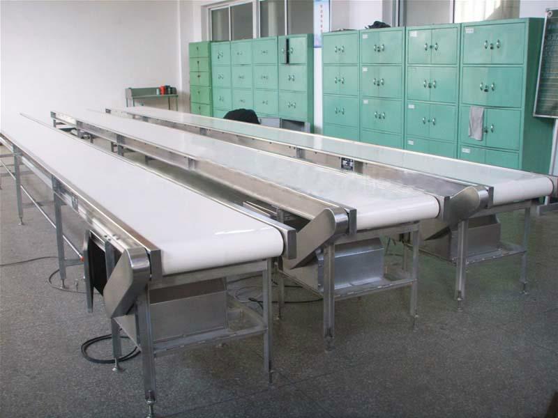 2.  輸送帶表面可加裙邊擋板; 輸送帶背面可加導(dǎo)條、紅膠、海綿等特殊加工。