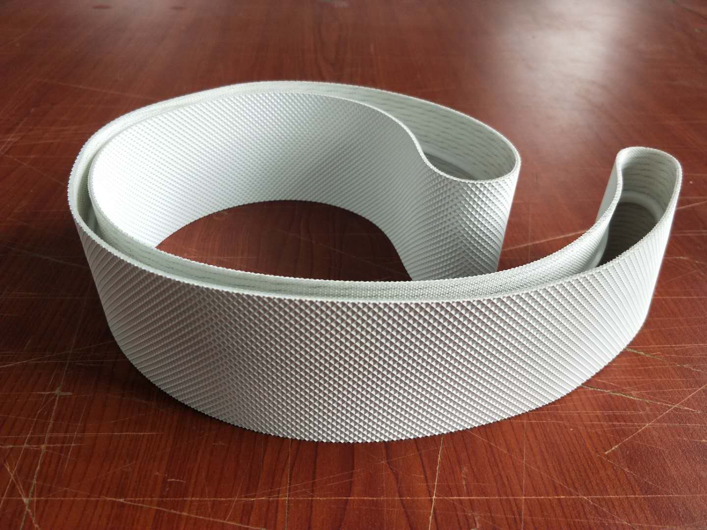 PU0.8MM一布一膠白色/藍(lán)色69齒接/鋼扣接食品級/耐油/耐磨/耐切割1.輸送帶表面有各種花紋,如鉆石紋/高爾夫球紋/十字紋等,具體規(guī)格參考花紋明細(xì)。